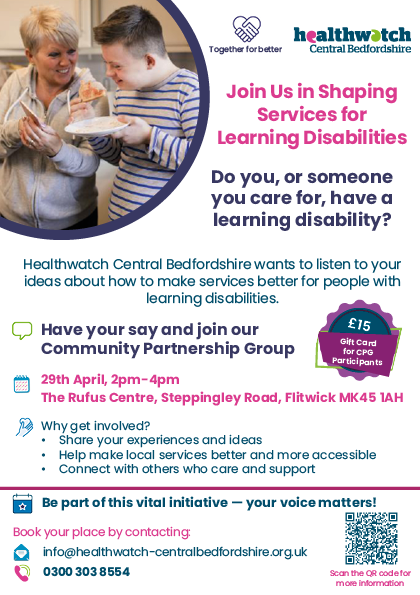 Event posterContact Vicky or Jo on 0300 303 8554 or info@healthwatch-centralbedfordshire.org.uk, to book your place.